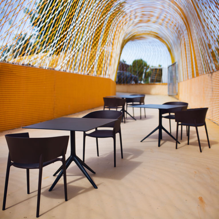 Il associe design épuré et ergonomie confortable, idéale pour favoriser les échanges en plein air.