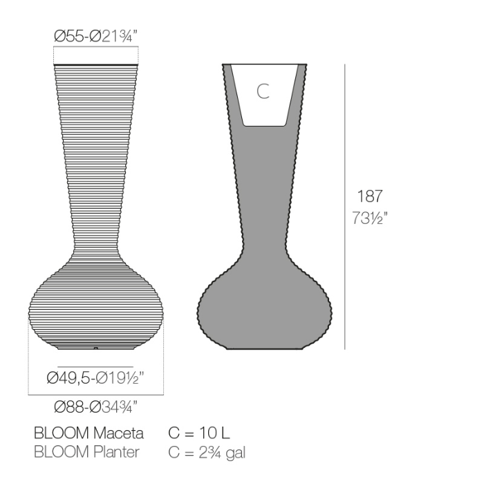 Imaginé par le designer Eugeni Quitllet, le Bloom Planter s’inspire de la forme d’une fleur en pleine éclosion pour offrir une sculpture lumineuse monumentale. Avec ses 187 cm de hauteur et 88 cm de diamètre, il devient immédiatement le point central de vos terrasses, patios ou rooftops d’entreprise.