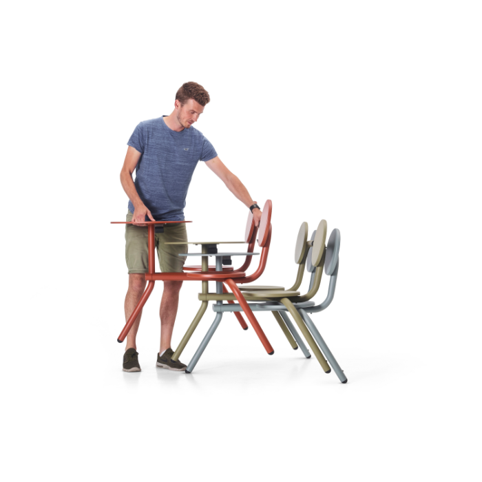 Design malin : sa structure à trois pieds lui confère une stabilité parfaite sur toutes les surfaces. Plus simple à empiler et ranger que des tables et chaises séparées, elle s’adapte parfaitement aux espaces réduits