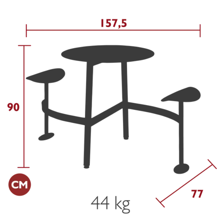 Confort intégré : deux assises fixées à la structure, ergonomiques et stables, pour un usage quotidien sans contrainte logistique.