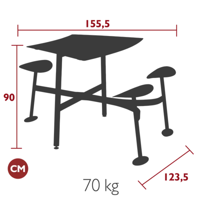 Structure robuste : acier tubulaire traité anti-corrosion, plateau et assises en tôle d’acier, peinture résistante aux UV.