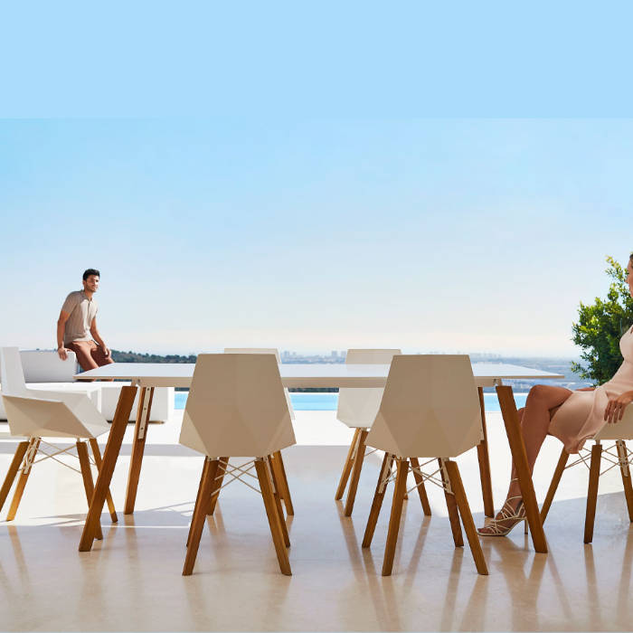 Une table haut de gamme et polyvalente, qui transforme vos espaces outdoor en lieux de travail et de convivialité élégants.