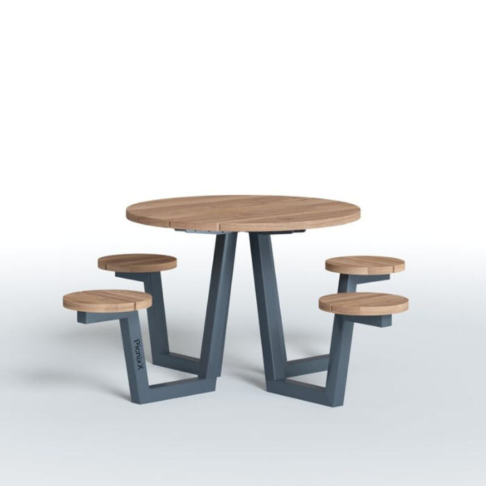 Conçue pour accueillir jusqu’à 4 personnes, la table Miss Mini combine l’élégance du bois dur certifié FSC, agréable au toucher et durable, avec une structure en acier traité, disponible dans le coloris RAL de votre choix pour une harmonie parfaite avec vos extérieurs .