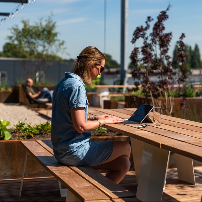 Une solution durable, élégante et personnalisable, parfaite pour les espaces collaboratifs extérieurs, les terrasses d’entreprise ou les rooftops.
